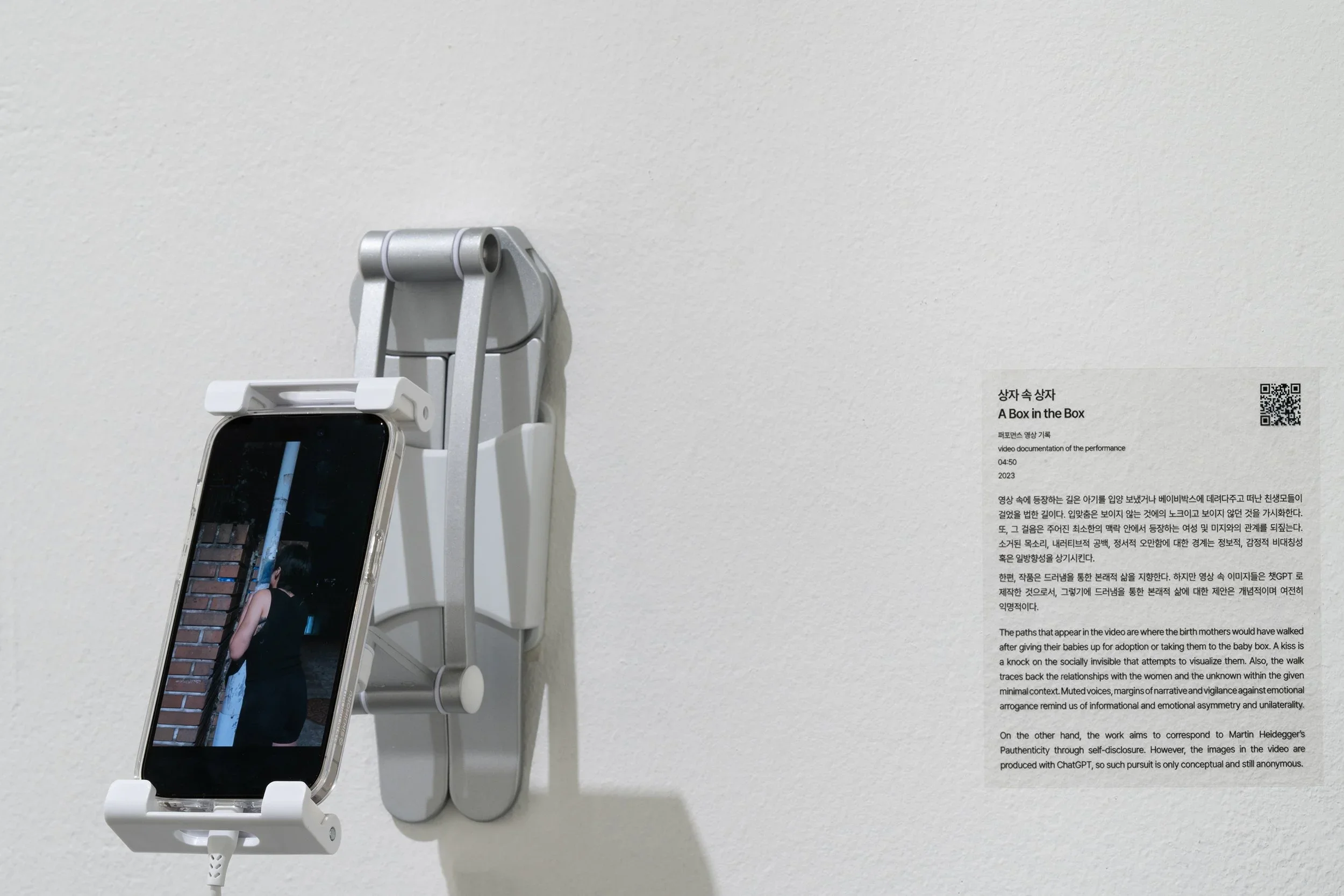 The paths that appear in the video are where the birth mothers would have walked after giving their babies up for adoption or taking them to the baby box. The kiss acts as a “knock” that attempts to bring the socially invisible into view. Also, the walk traces the relationships with the women and the unknown within the limited context given. Silenced voices, narrative gaps, and vigilance against emotional arrogance remind us of informational and emotional asymmetry and unilaterality. Though the work aims to correspond to Martin Heidegger’s authenticity through self-disclosure, the images in the video are generated with ChatGPT, rendering such a pursuit purely conceptual and anonymous.